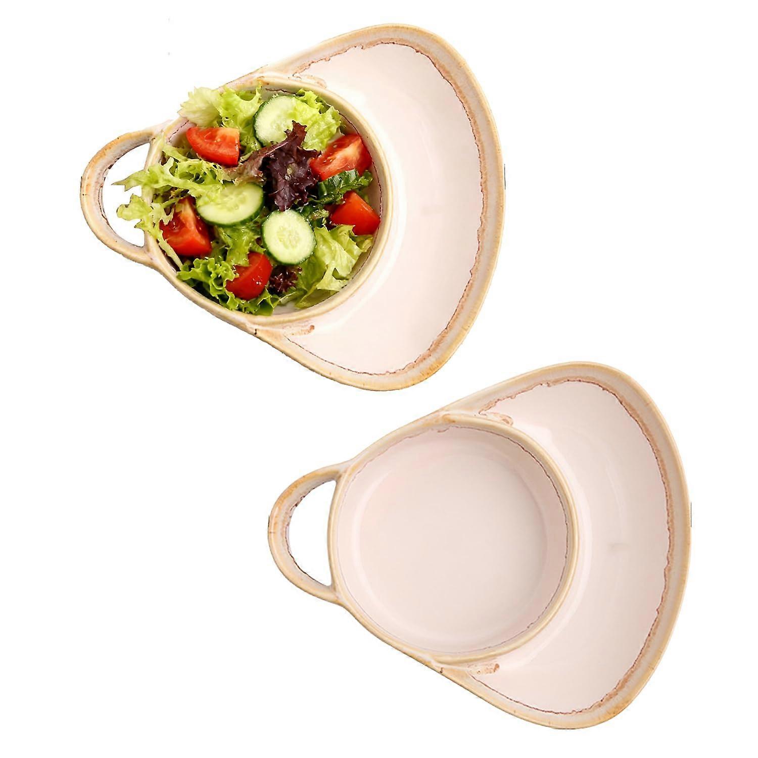 Revitalize your dining experience with our retro singlehandled chip and dip bowl set, designed to bring both style and functionality to your table. Crafted from durable stoneware, these bowls are microwave safe, making them for both everyday meals and special gatherings. The vintageinspired singlehandle design not only adds a unique visual appeal but also makes serving and carrying simple and comfortable. Compact yet spacious, each soup and sandwich plate combo measures approximately 8.07 inches (20.5 cm) in length, 6.89 inches (17.5 cm) in width, and 1.97 inches (5 cm) in thickness, with a generous 24 oz capacity. This ideal size makes them for serving chips and dip at parties, soup with crackers during lunch, or a hearty snack while watching your favorite show. The doublebowl structure with separate compartments ensures that foods remain distinct, so you can enjoy combinations like warm soup paired with crusty bread, tortilla chips with salsa, or fresh veggies with hummus without mixing flavors or textures. For safety and convenience, the ear hanging handle design allows you to hold and carry the bowls easily, reducing the risk of burns when serving hot meals. You can comfortably transport them with one hand, enjoying your food at just the right temperature without sacrificing ease or safety. Key benefits: Stylish retro singlehandle design adds charm to any dining setting Microwave safe stoneware for easy heating and serving Compact size with ample capacity for versatile use Separate compartments for keeping foods fresh and distinct Safe and comfortable ear hanging handle for onehand carrying Ideal for: Hosting guests with chips and dip or other party snacks Serving soup and bread for a cozy lunch or dinner Enjoying multiple snacks while keeping flavors separate This combination of style, function, and versatility makes our chip and dip bowls an essential addition to any kitchen.