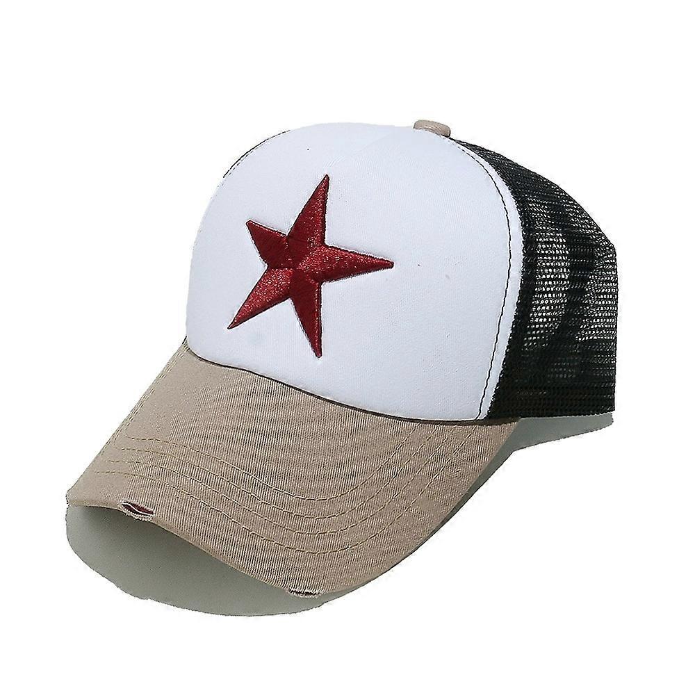 Large five pointed star embroidered mesh baseball cap suitable for outdoor sports and leisure