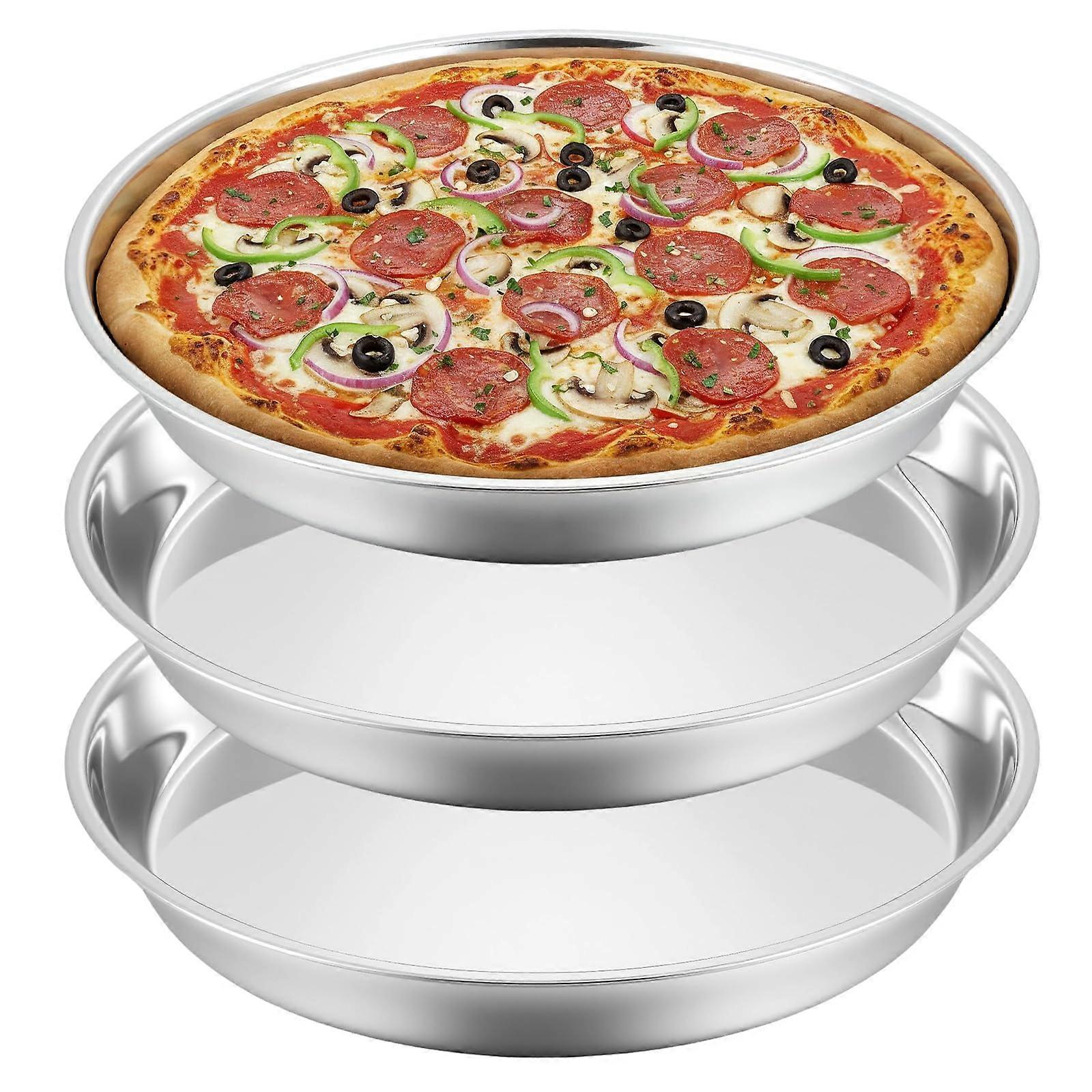 3 Pcs 16 Inch Deep Dish Pizza Pan Set, Large Stainless Steel Pizza Trays for Oven, Dishwasher Safe