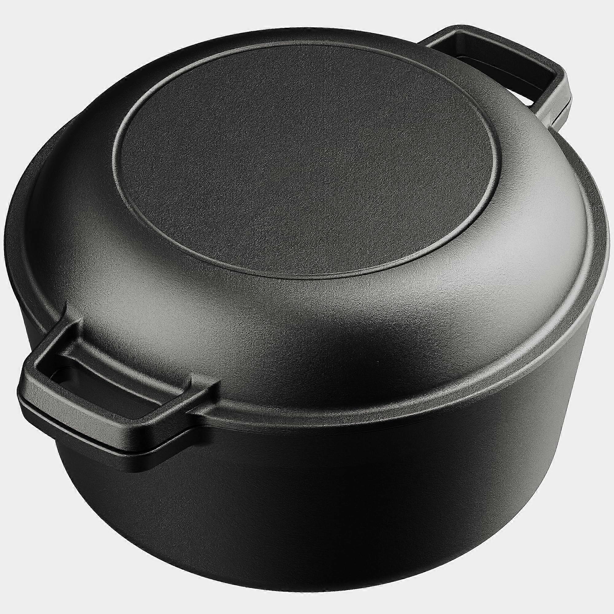 5QT Cast Iron Dutch Oven with Skillet Lid, PreSeasoned 2 in 1 Pot for Bread Baking and Campfire Cooking