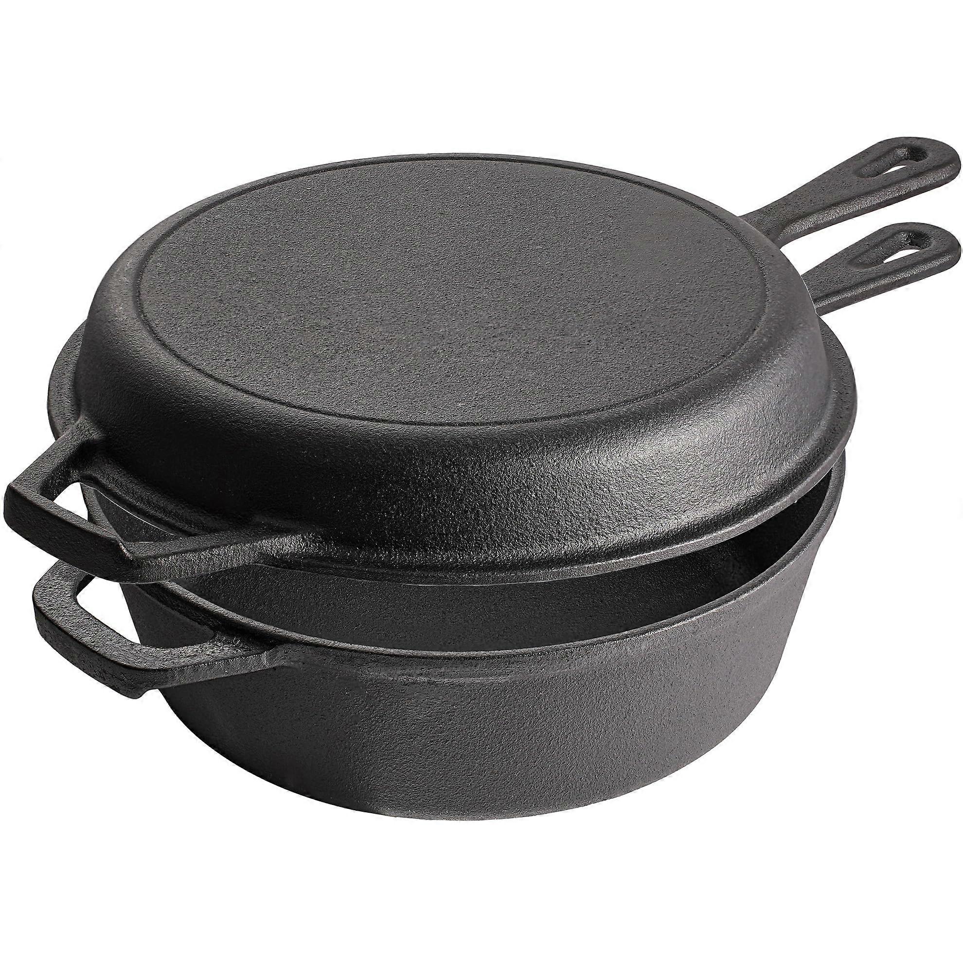 2in1 PreSeasoned Cast Iron Dutch Oven with Skillet Lid for Baking Frying Roasting Camping