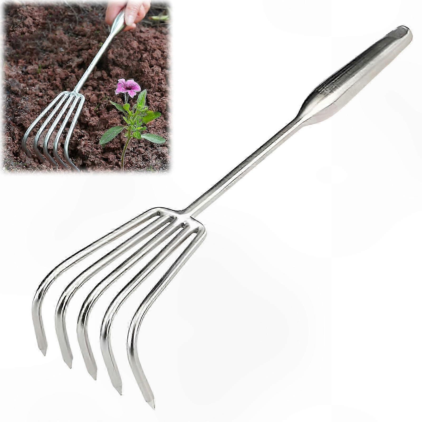 - Robust construction and size: Hand rake with 2, 4 or 6 sturdy steel tines for precise and effective gardening; total length 20 cm; ideal for working in flower beds and smaller garden areas. - Ergonomic wooden handle: Natural wooden handle provides comfortable handling; suitable for loosening soil, removing leaves and caring for flower beds. - All-in-one tool for multiple tasks: Useful for weeding, breaking up soil clumps, preparing seedbeds and raking debris. Suitable for gardens, allotments, vineyards and landscaping. - Practical design for narrow spaces: Compact design allows precise work in tight plant areas. - Use scenarios: In flower beds, use to loosen soil and clear debris; in small plots or seedbeds, use to remove weeds, break up clumps and prepare soil; along edges or in lawns, use to rake debris and maintain tidy areas.