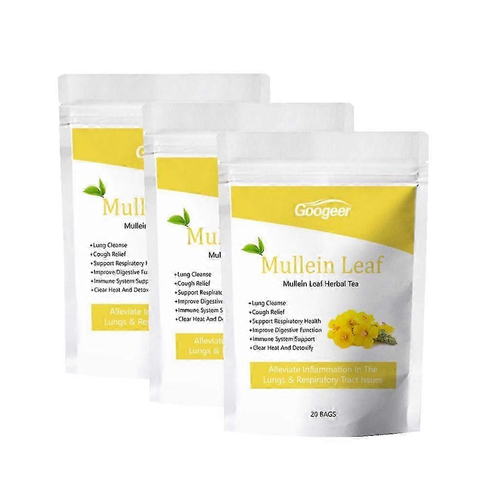 3PACK Herbal Mullein Leaf Tea Bags for Lung Cleansing & Cough Relief, 20 Bags Per Pack