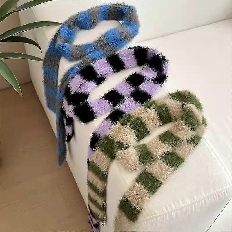 Korean Version striped Plush Scarf Women's Niche Design Sense Spice y2k Girl Versatile Decoration Thin and Narrow Long Scarf