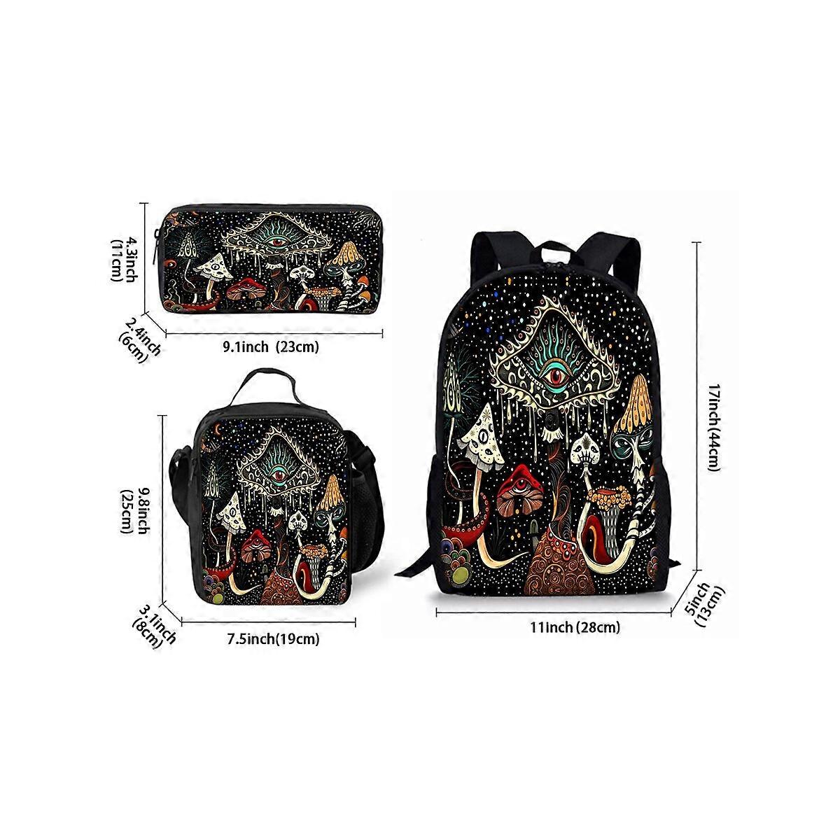 Bohemian Mushroom Print Three Piece Backpacks Set for Boy and Girls Best Gifts 3D Cartoon School Bag for Children