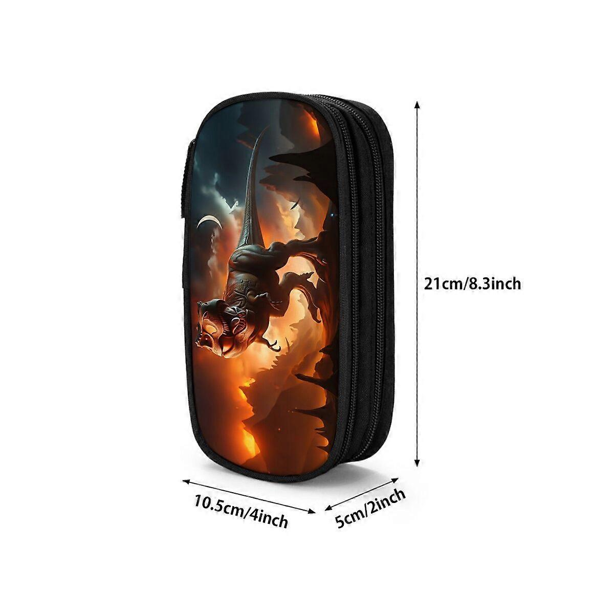 Dinosaur Print Black Multifunctional Double Layered Pen Case for Boy/Girls Best Gift 3D Cartoon Pencil Case for Children