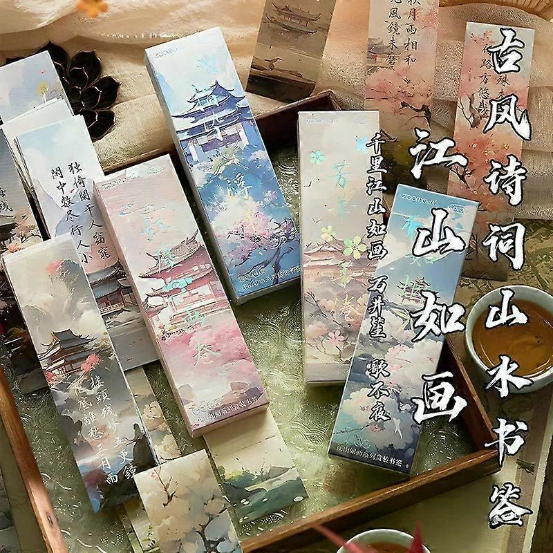 30sheet/box Retro Chinese Style Bookmarks Anime Vintage Aesethetic Flroal Palace Bookmark for Books Beauty Scenary Bookmark