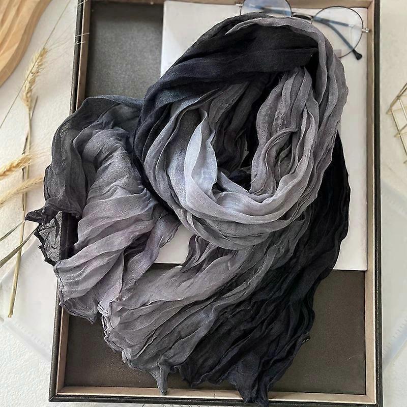 Autumn Winter Cotton Hemp Scarf Gradient Blue Korean Versatile Printed Scarfs Women Long Soft Fashionable Trend Fold Shawl