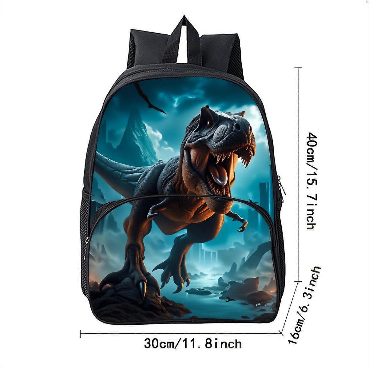 Dinosaur Print School Backpack for Boys/Girls Best Gift Waterproof 3D Cartoon Round Front Pocket Bag for Children