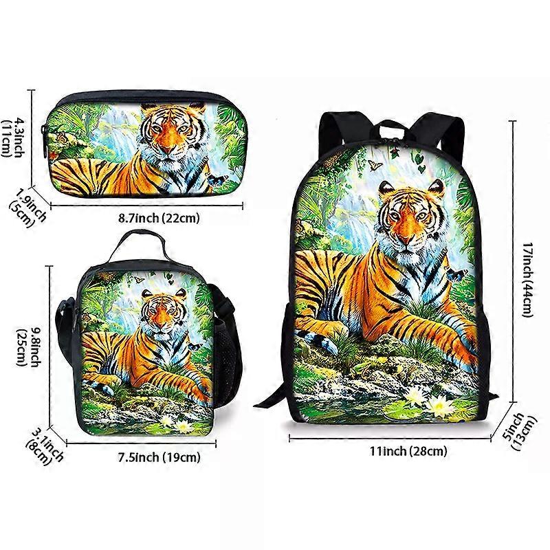 Fierce Tiger Three Piece Backpacks Set for Boy and Girls Best Gifts 3D Cartoon School Backpack for Children