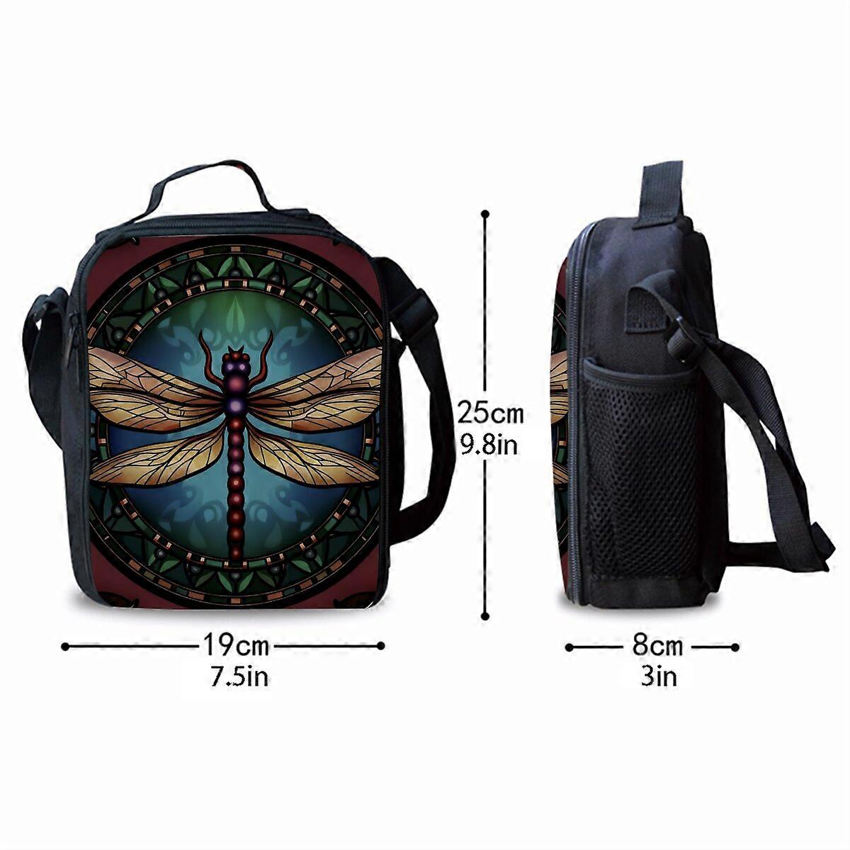 Dragonfly Print Shoulder Strap Insulated Lunch Bags 3D Cartoon Boy/Girls Picnic Food Preservation Lunch Box Bag Thermal