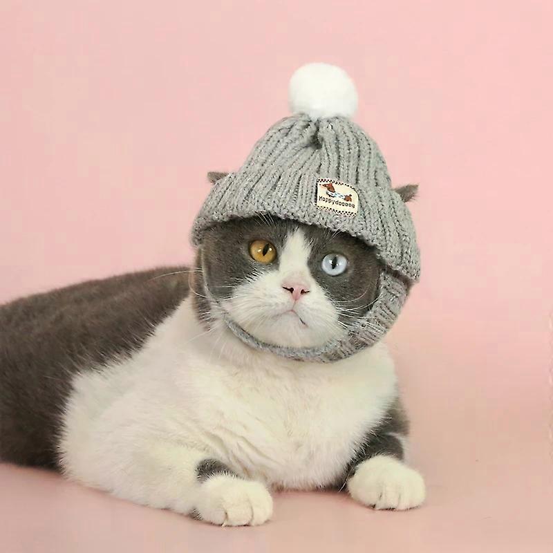 Winter Pet Dog Knitted Hat Ear Exposed Headgear Windproof Fashion Cat Headband Autumn And Winter Fur Ball Pet Dress Up Supplies