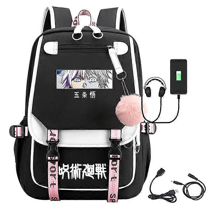 Jujutsu Kaisen Anime USB Port Backpack Nylon School Book Student Travel Bags Laptop Casual Large Messenger Bag
