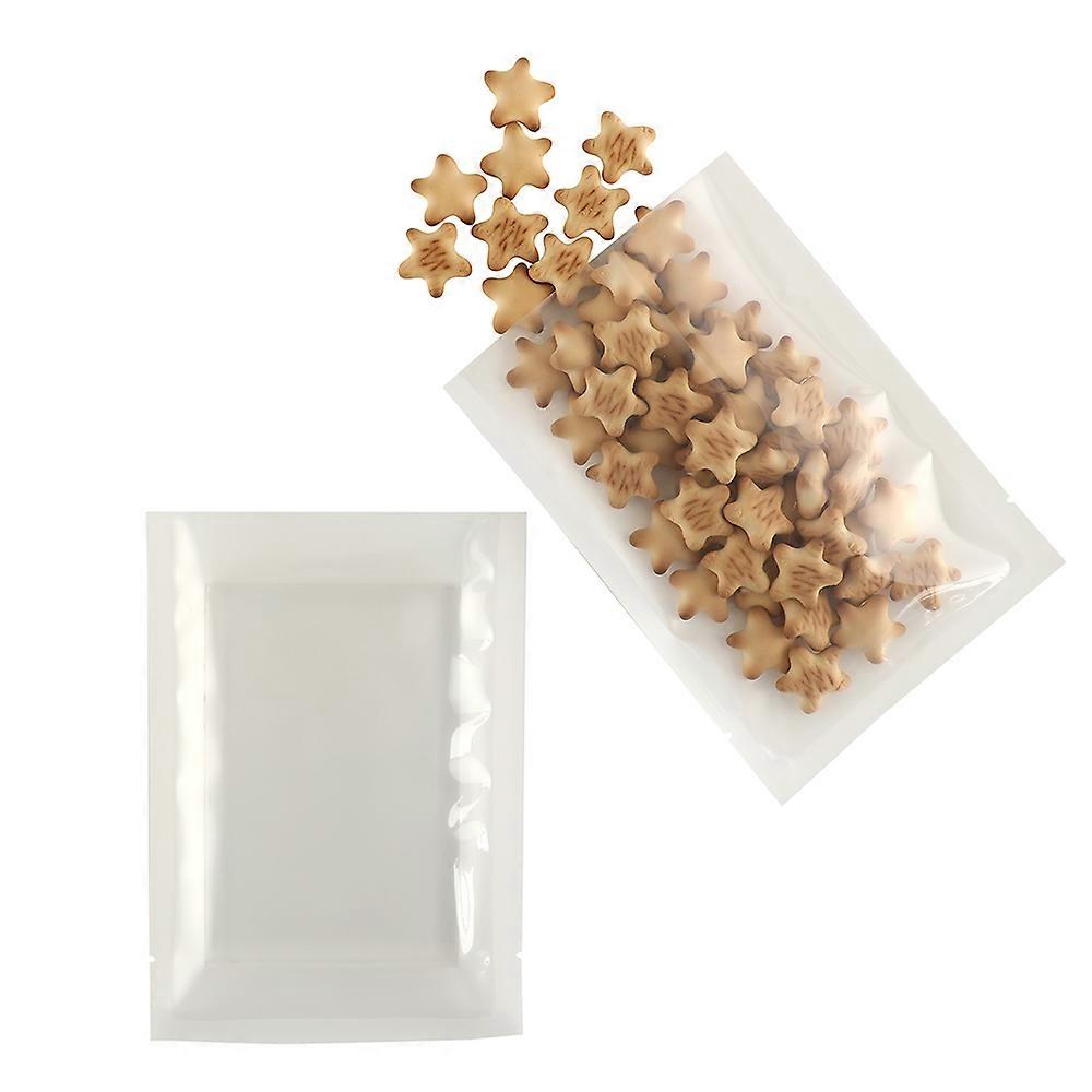100Pcs Vacuumable Airtight Open Top Pouch Seafood Food Heat Sealable Packaging Clear Window White Compressed Vacuum Storage Bag