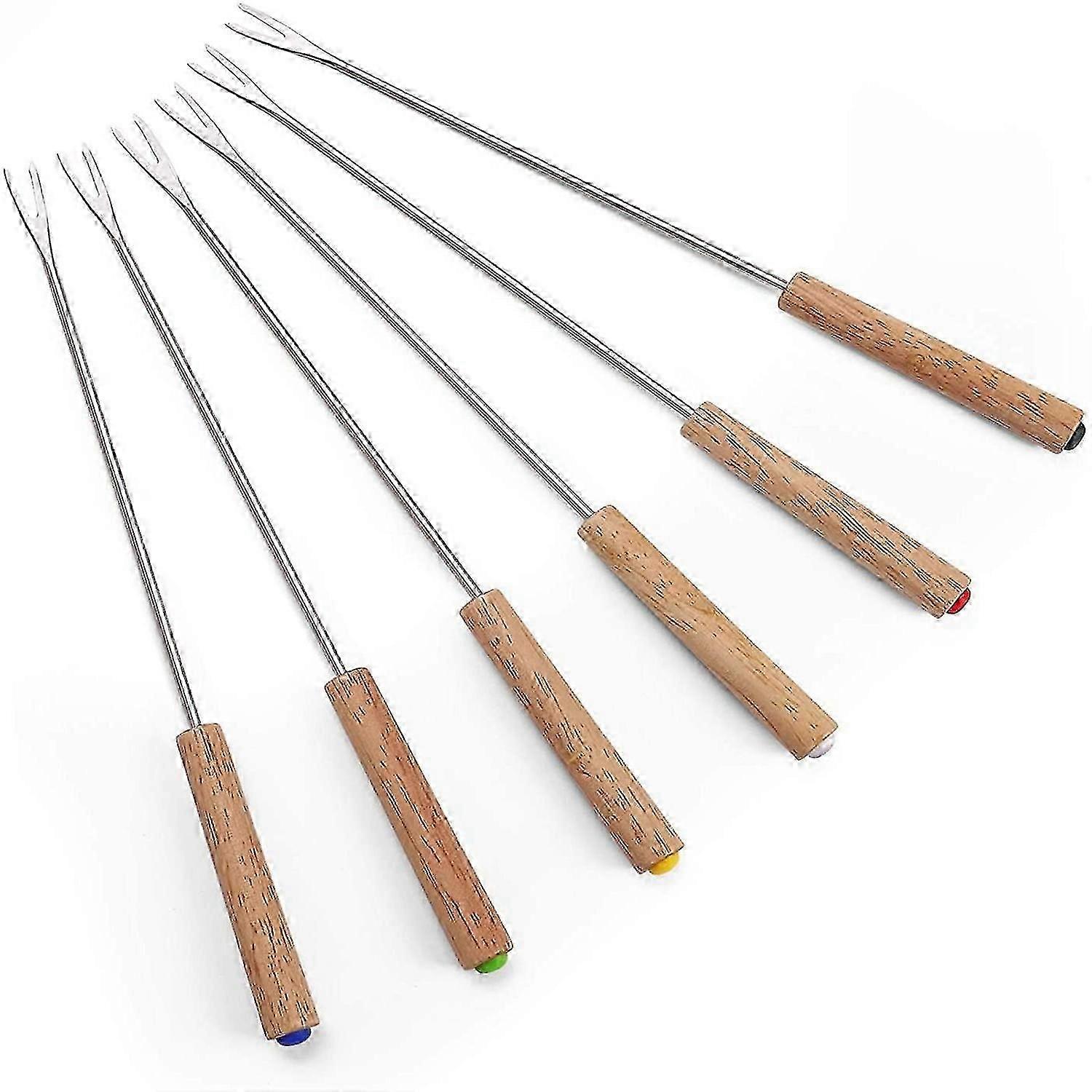 Stainless Steel Fondue Fork Heat Resistant Wooden Handle 9.5" - 6 Pieces SZBYM364