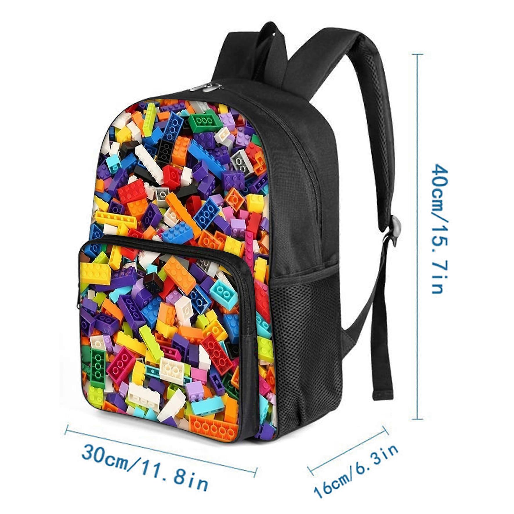 Building Block Patten Square Front Pocket Backpack Zipper Large Capacity for Boy/Girl Best Gift 3D Cartoon Children's School Bag
