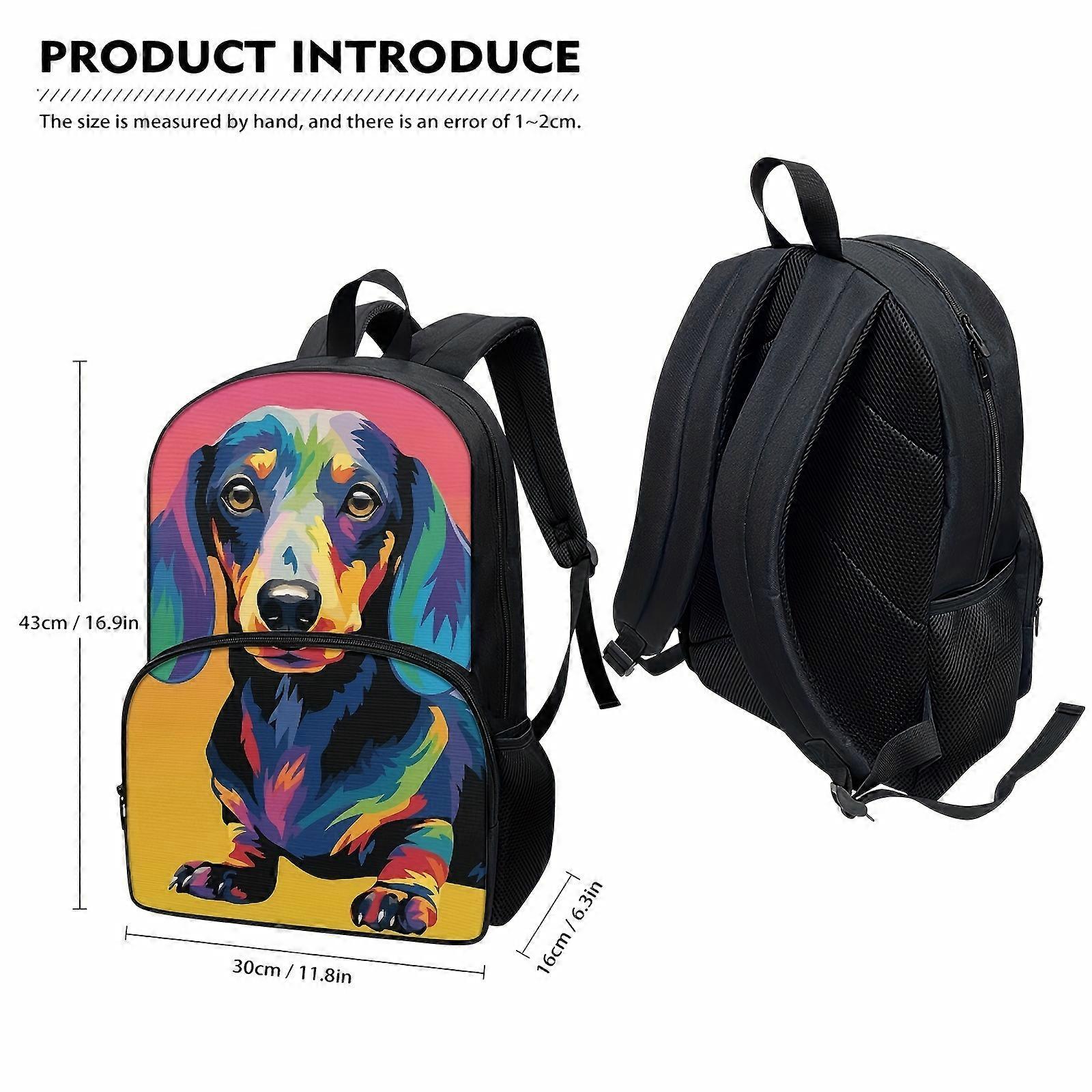 Colorful Dachshund Pattern Book Bag For Students Back To School Lightweight Casual Daily Use Laptop Backpack