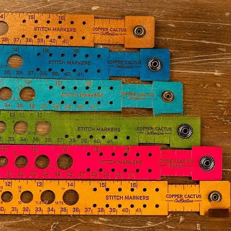 Multi-functional leather ruler measuring tool marking storage ruler for crochet, knitting, embroidery, weaving, and sewing use