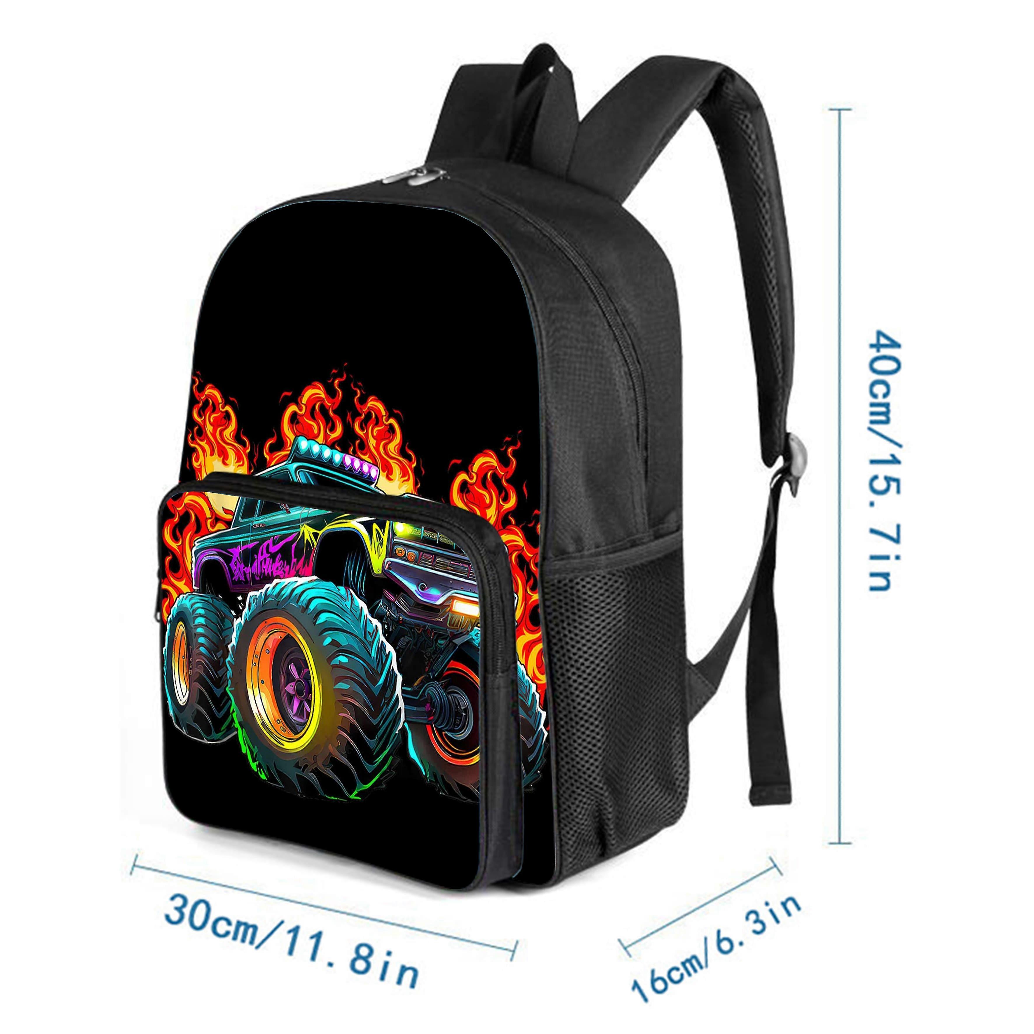 Truck Pattern Square Front Pocket Backpack Zipper Large Capacity for Boys Girls Best Gift 3D Cartoon Children's School Bag