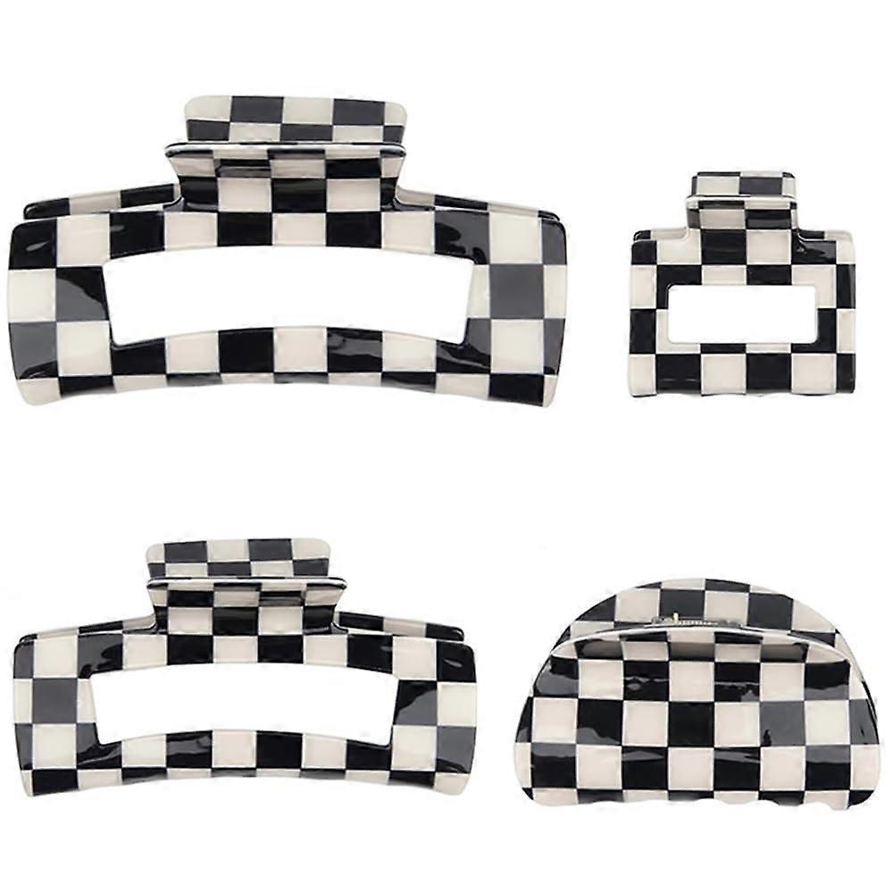 4Pcs Checkered Hair Claw Clips for Women, Large Rectangle Square Clips, Black and White Hair for Thick Thin Hair, Jaw Hair Accessories