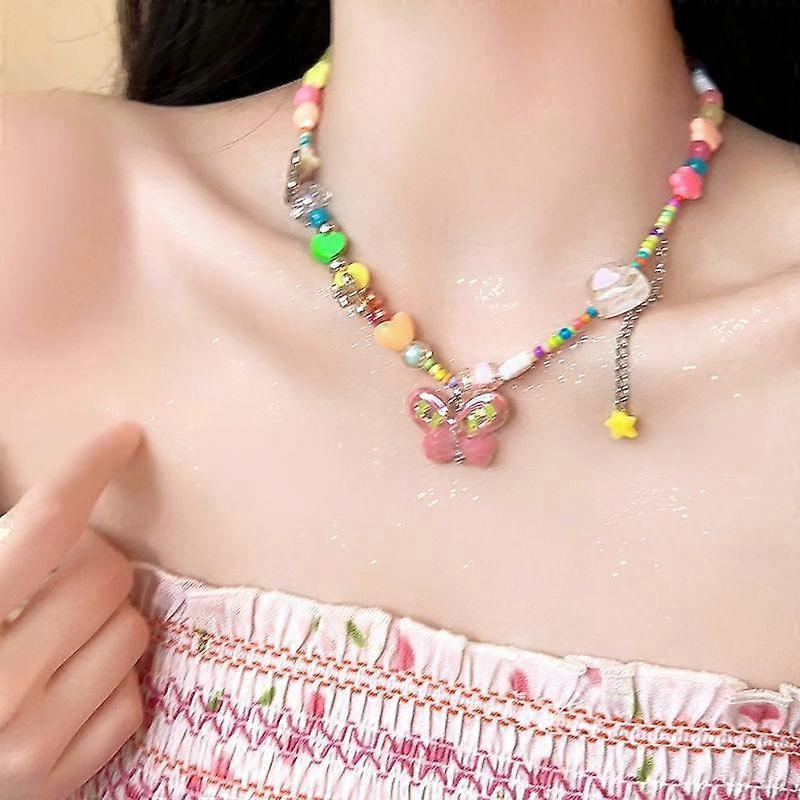 Y2k Rainbow Candy Beaded Choker Necklace Women Boho Beads Apple Pendant Necklaces Irregular Girl Necklace Jewelry Gifts