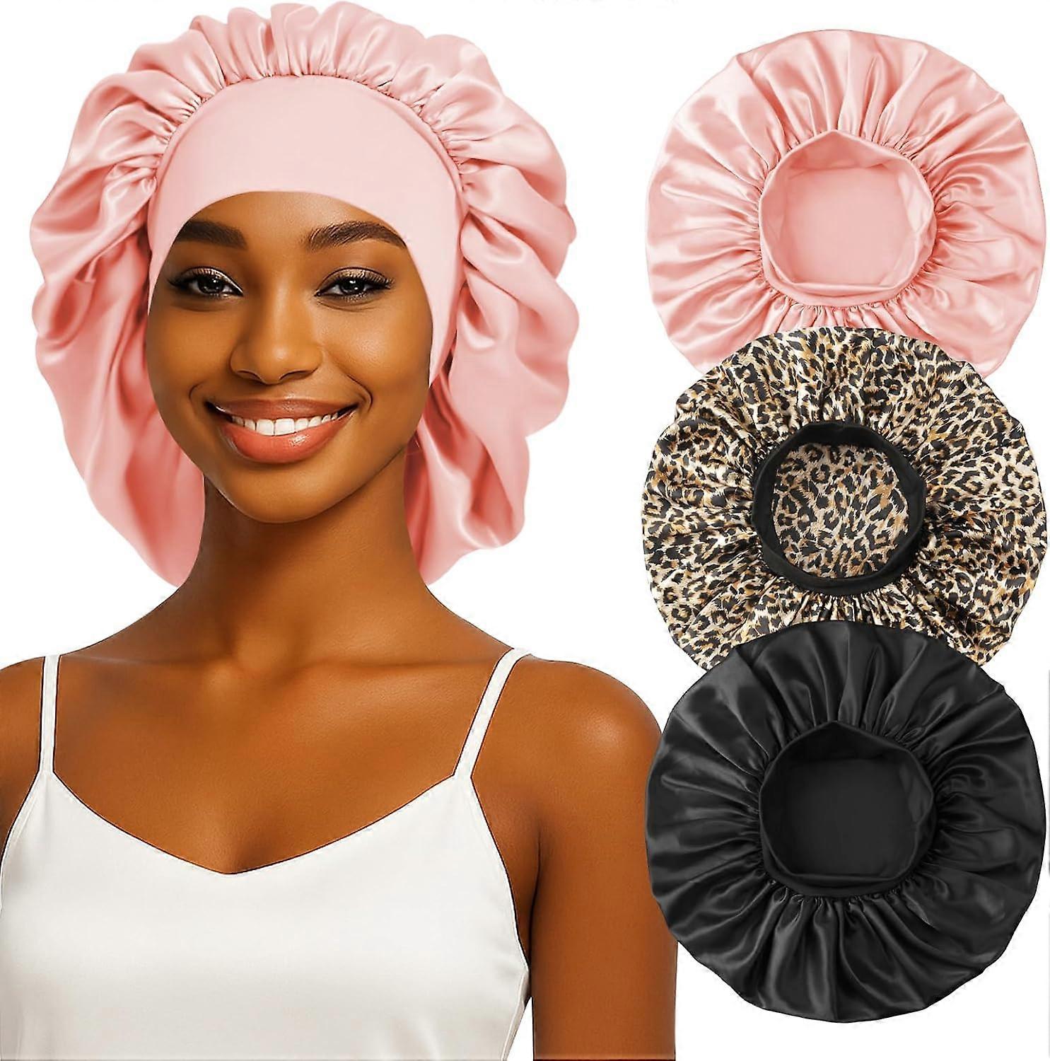 3PCS Silk Sleep Bonnet for Women, Large Satin Hair Caps with Elastic Band for Curly Hair and Frizz Control