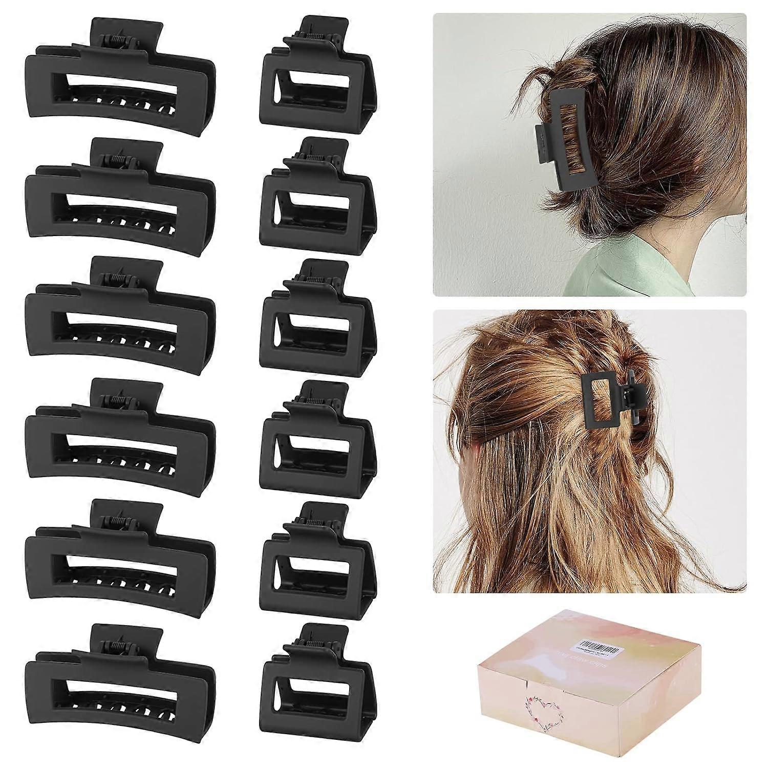 Rectangle Hair Accessories Set for Women and Girls - 6 Large Clips for Thick Hair, 6 Small Clips for Thin Hair (Black)