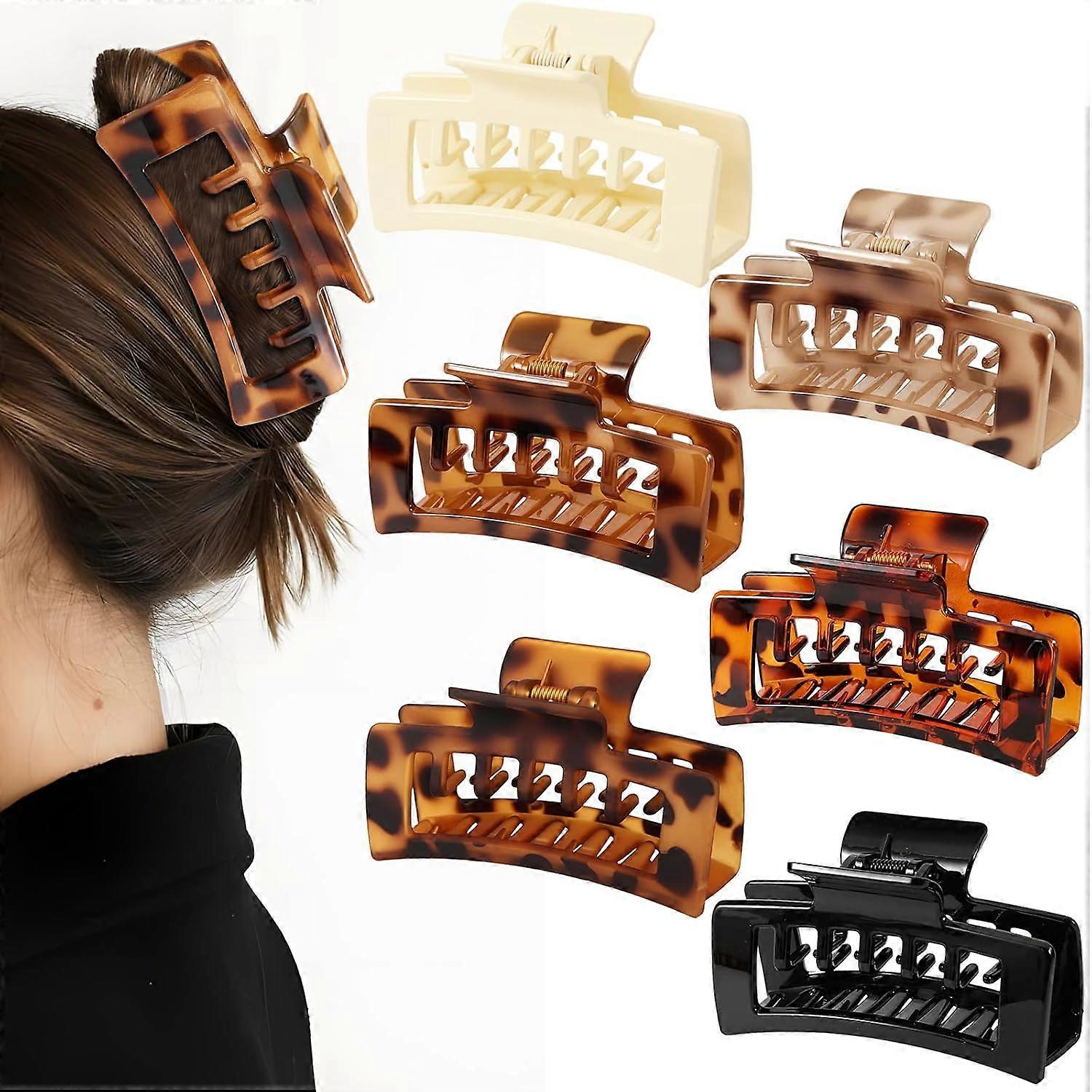 6 PCS 4.1 Inch Large Claw Clips for Women Girls, Big Tortoise Shell Rectangle Hair Clips for Thick/Long/Curly Hair, Strong Hold Square Claw Clip Non