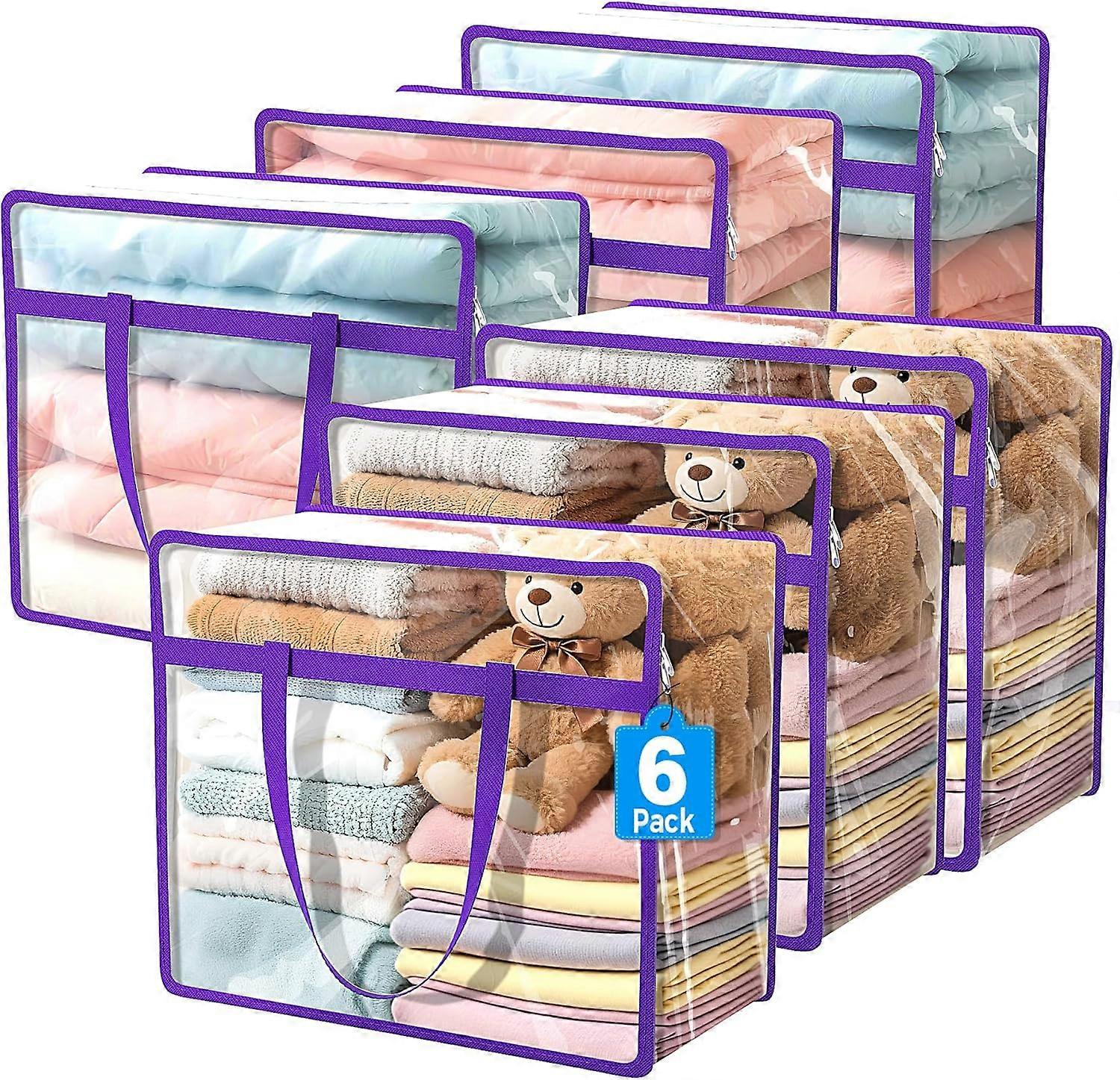 Resistant &amp; Sturdy Material : The clothing bags are made from heavy-duty PVC material for excellent toughness as well as resistance to be punctured. The zippered closure is effective for dustproof and preventing from bugs, which keep the items inside clean and tidy.<br>Portable &amp; Moving Bags : The storage totes are equipped with strong handles, and you can hold it with hands or shoulder as you need. Also, it can be moving bags and dorm room storage essentials for comforters, blankets, beddings, clothes and pillows.<br>Clear &amp; Visible Design : The blanket storage is clear and visible design, which make it easier to find what you want inside without opening the storage bags one by one. Large capacity is designed for pillows and queen size beddings, or comforters.<br>Multi Application Scenarios : The transparent storage containers can be put in the closet or under the bed, suitable for most dormitories, attics, basements, and bedrooms.<br>Perfect for Holiday Pack-Up:After the celebrations are over, these storage bags help you quickly organize piles of wrapping paper, Christmas blankets, gift boxes, and seasonal decorations. The spacious design makes post-holiday clean-up easier and keeps your home tidy and refreshed.