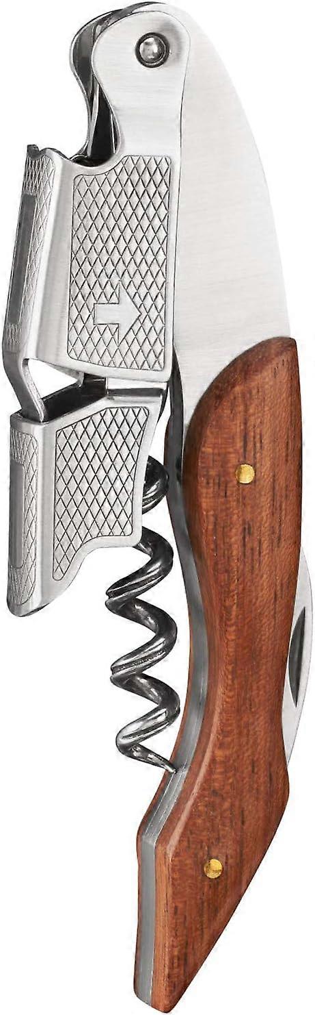 True Sommelier Waiters Corkscrew Wine Opener with Built-in Bottle Opener and Sharp Foil Cutter, Stainless Steel with Wood Handle for Travel, Home Bar