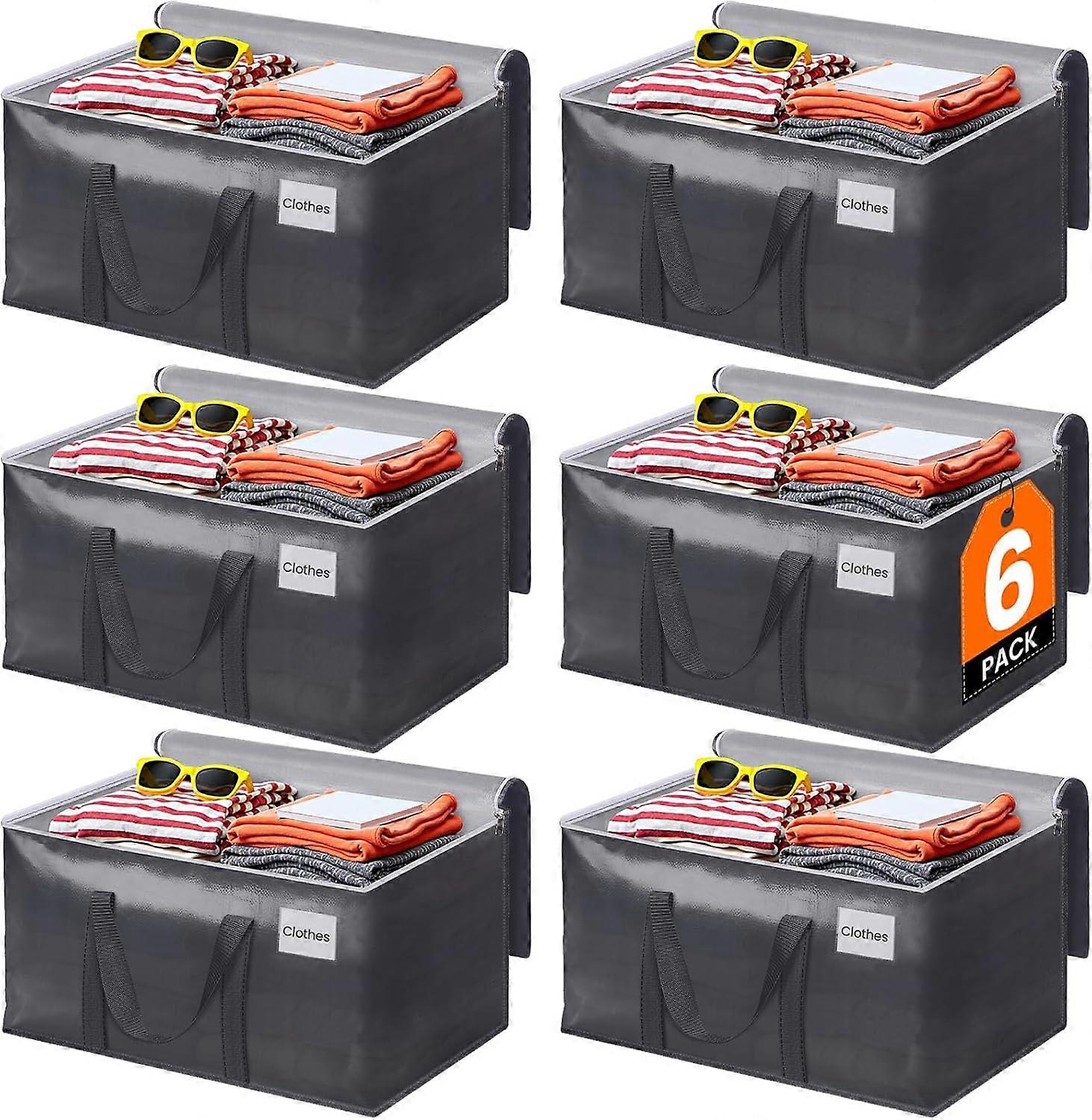 6 Pack Moving Bags Heavy Duty, Moving Boxes, Storage Bags with Zipper & Handles & Tag for College & Dorm Moving Supplies Grey Laundry Hamper Bag, Fol