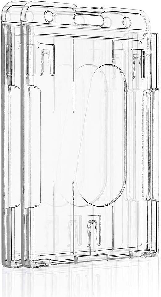 2 Pack Vertical 2-Card Badge Holder with Thumb Slot Hard Transparent PC Case Protector for Office School IDs Credit Cards Driver’s Licenses and Pass