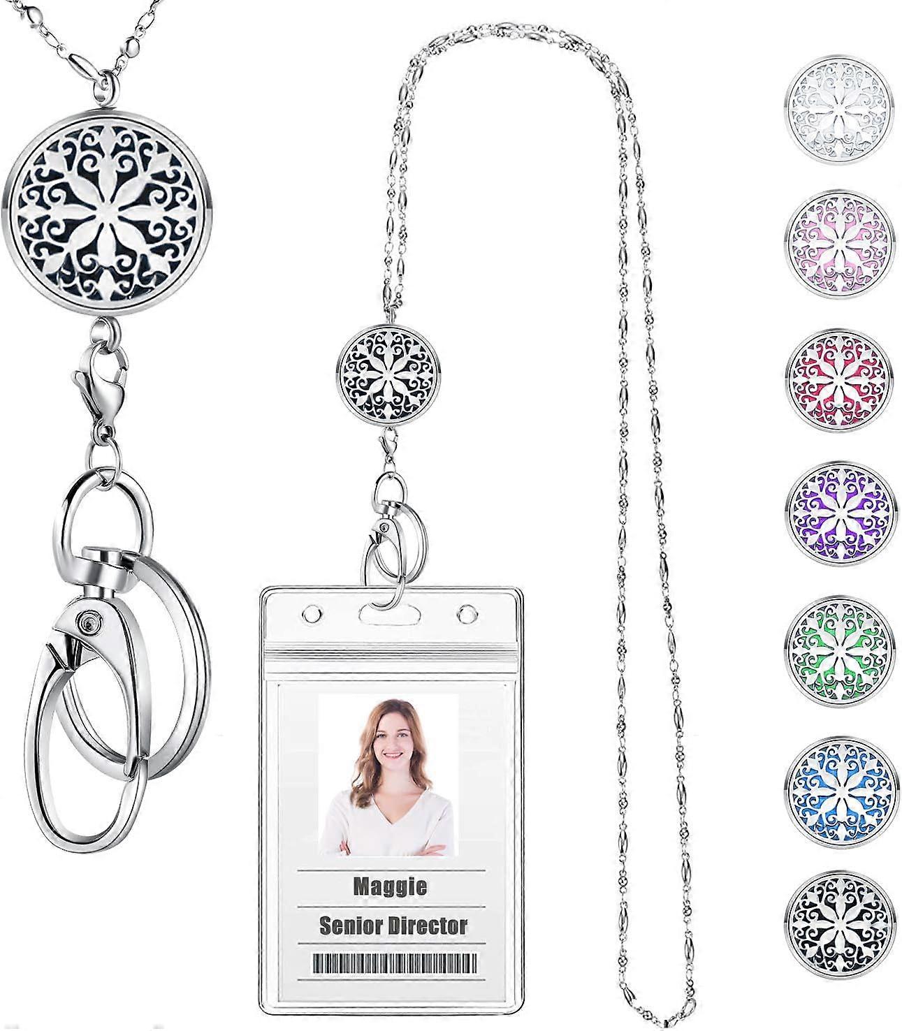 Lanyards for ID Badges Keys Women Cute Teacher Lanyard ID Holder Necklace Silver Chain Fashion Strong Keychain Diffuser Office School Work Jewelry Nu