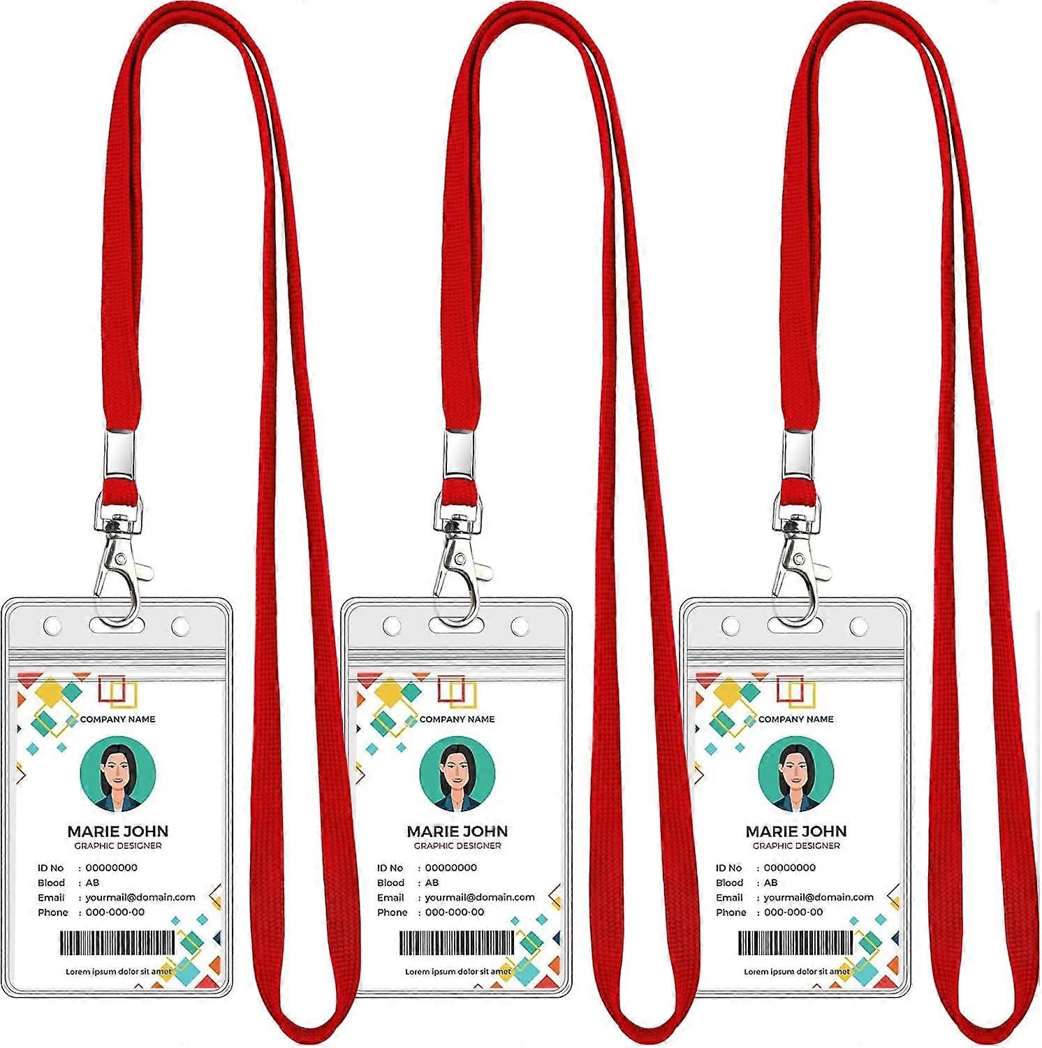3 Pack Clear ID Badge Holder with Lanyard Red Lanyards with Vertical Waterproof ID Badge Holder for Office, School, Travel