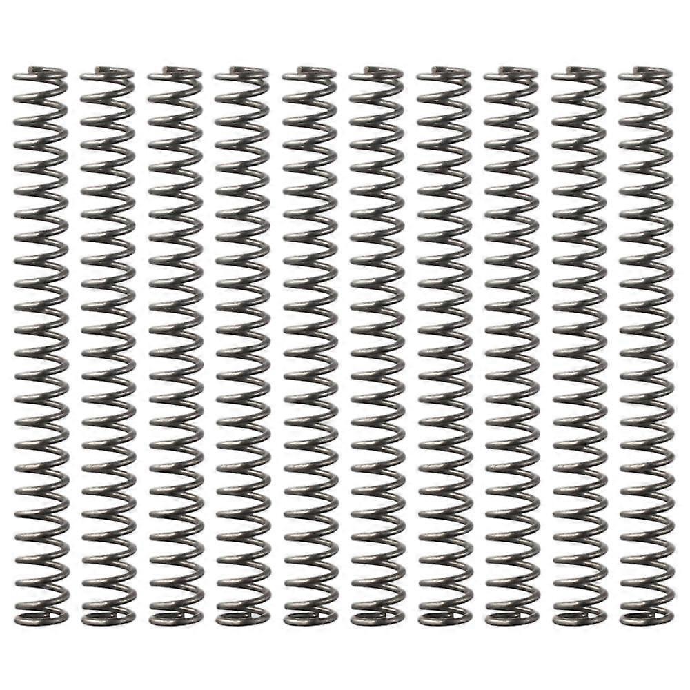 [DETAIL]<br>100% Brand new and high quality<br>Type: Compression Spring<br>Wire Diameter: 0.7mm(0.027")<br>Material: Stainless Steel<br>Color: Silver<br>Description:<br>Wire Diameter: 0.7mm/0.027".<br>Package Content: 10pcs x Compressed Spring.<br>Advantage: Spring steel offers good mechanical properties with greater corrosion and heat resistance than music wire.<br>Note: General use spring equipment tools etc. Can not be used outdoor.<br>Material: Made of Alloy spring steel , features high elasticity and good precision, installed small size and generate strong force.<br>Package included: 10Pcs Compression Springs<br>Note:<br>1. There is a 2-3% difference according to manual measurement. Please check the size carefully before you buy the item.<br>2. Please note that a slight color difference should be acceptable due to the light and screen.<br><br>[ATTRIBUTES]<br>- High-concerned chemical: None<br>- Model Number: as Described<br>- DIY Supplies: Electrical<br>- High-concerned chemical: None<br>- Model Number: as Described<br>- DIY Supplies: Electrical<br>- Material: Steel<br>- Origin: Mainland China