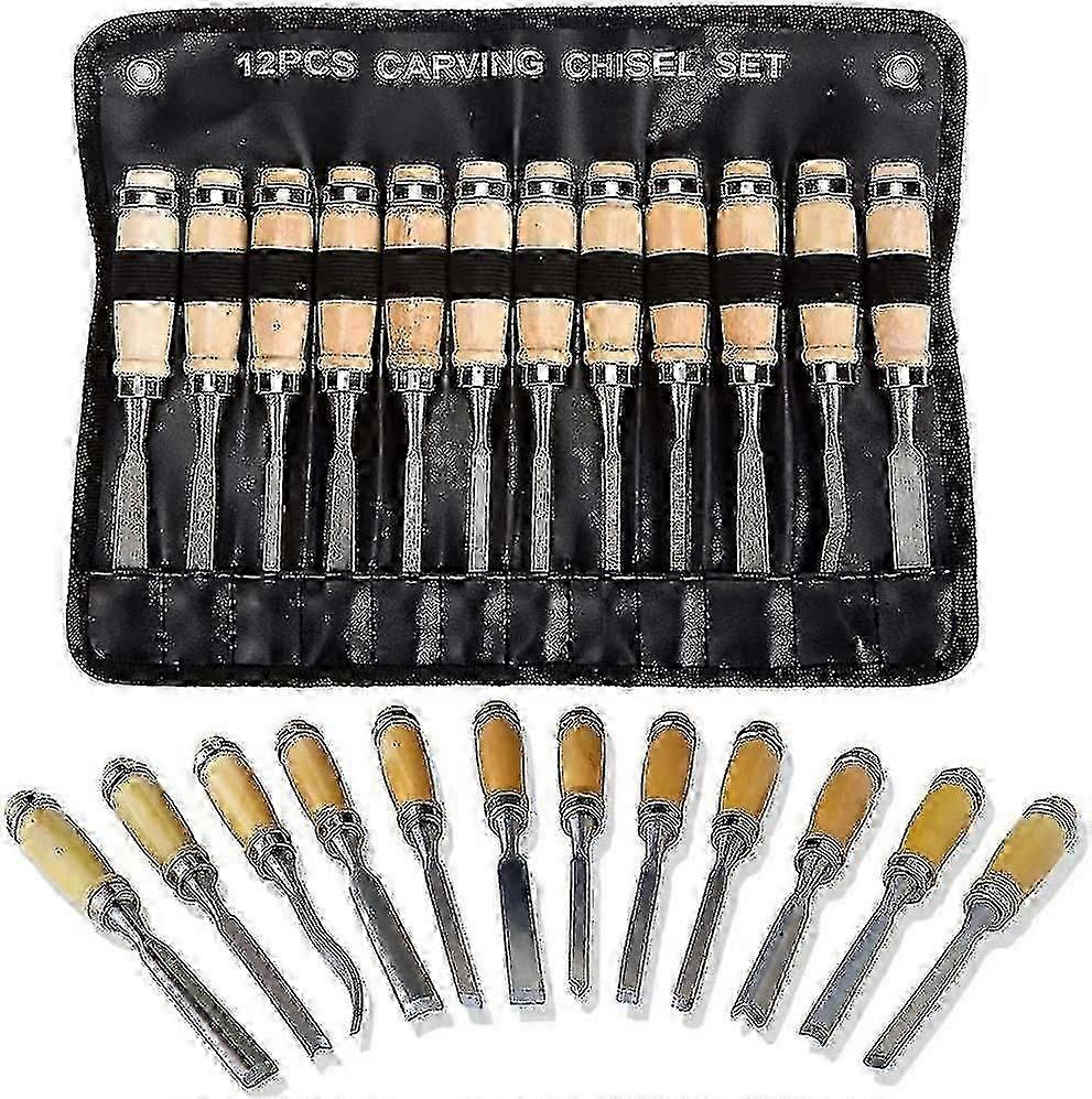 Professional Wood Carving Chisel Set - 12 Piece Sharp Woodworking Tools W/carrying Case - Great For Beginners szshsy636