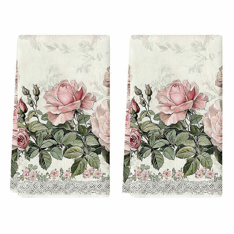 2Pcs, Vintage Lace Pink Rose Kitchen Towels, 40Cm*60Cm Towel Set, Super Absorbent Soft Cleaning Cloth, Cooking Baking Tea Towel, Hand Towel,