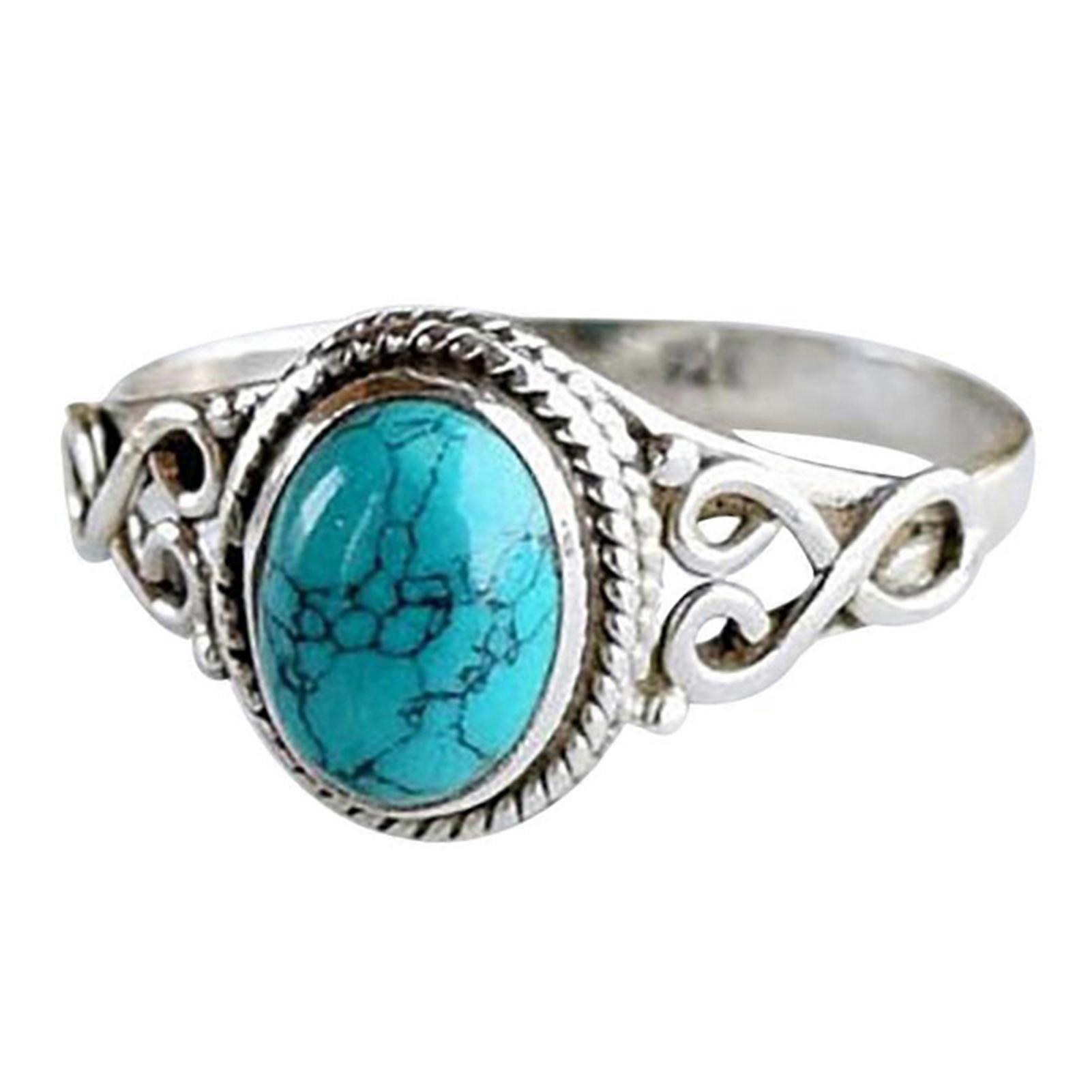 Women Ring Exquisite Faux Turquoise Colorfast Vintage Style Women Circlet Finger