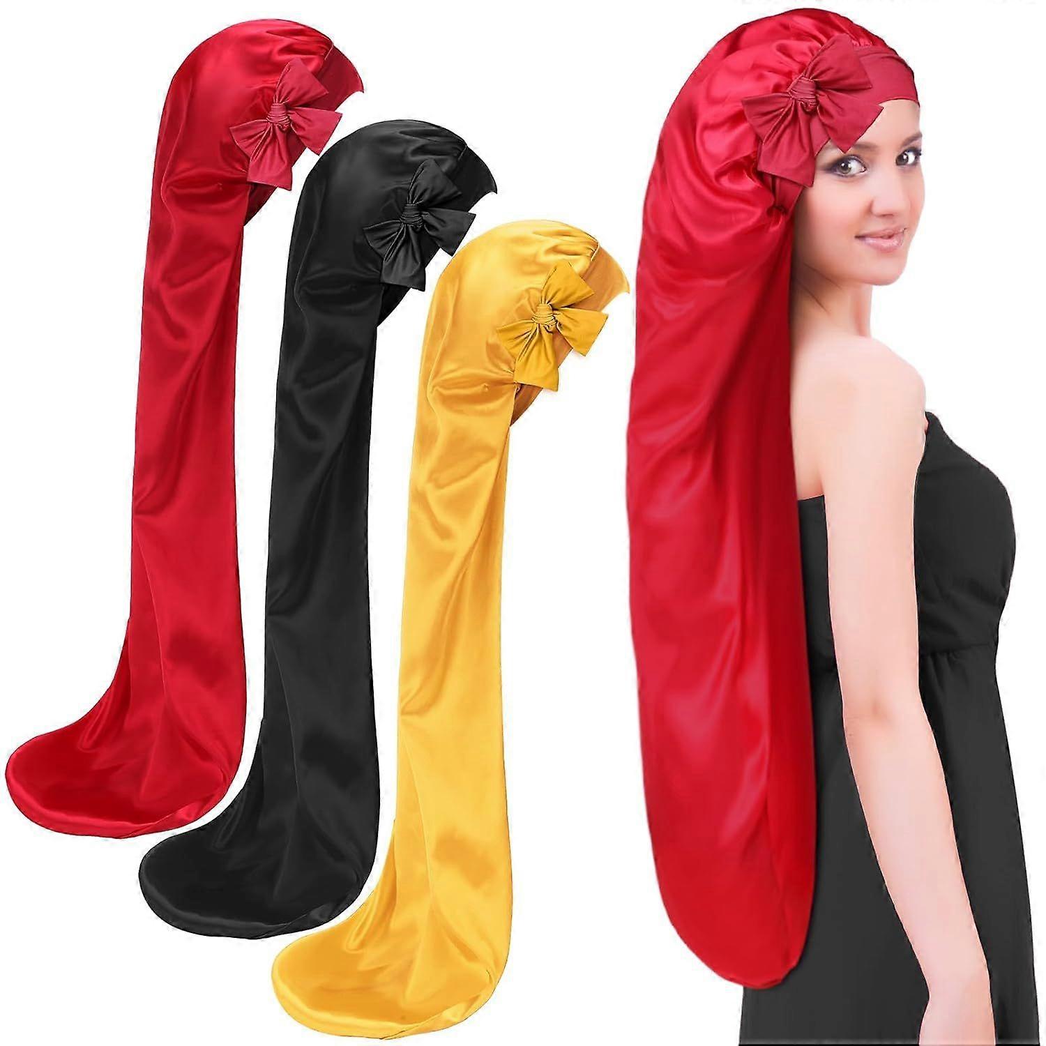 3 Pcs 35 Inches Extra Long Satin Braid Bonnet for Sleeping Silk Hair Bonnet for