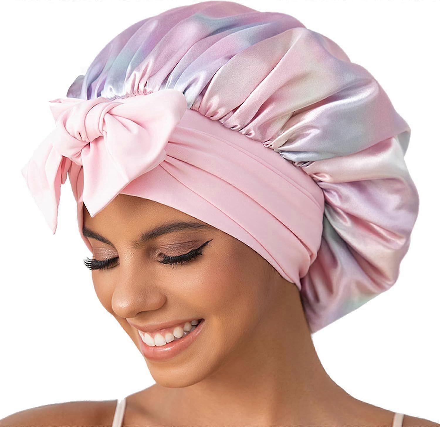 Satin Silk Bonnet for Sleeping Women - Double Layer Sleep Hair Bonnets Caps for