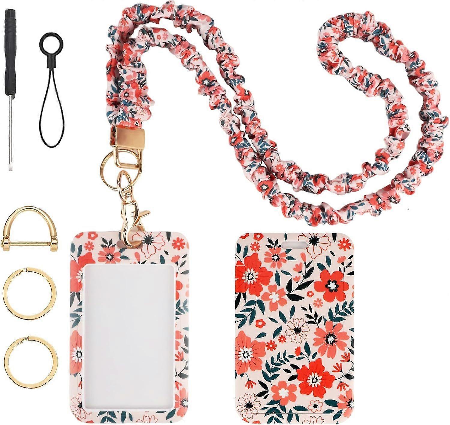 Scrunchie Lanyard Breakaway with ID Badge Holder - Floral Style Stretchy Lanyards with ID
