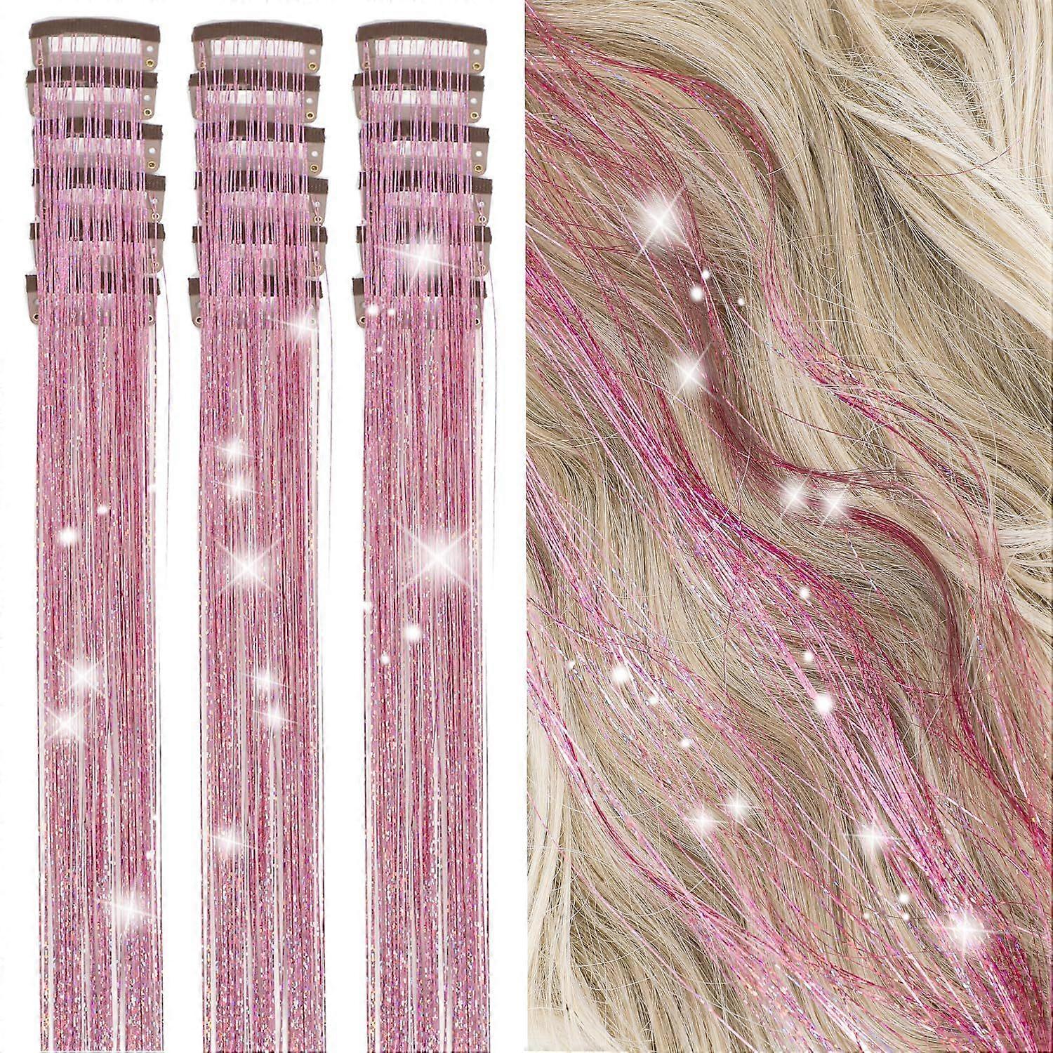 Hair Tinsel Kit Pack of 18 Pcs Hair Tinsel Clip in 19.6Inch Glitter Tinsel Hair