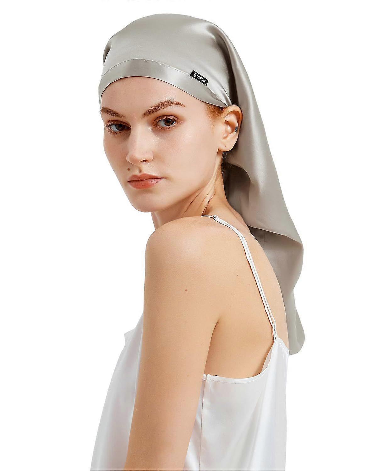 Mulberry Silk Sleep Cap 100% 19 Momme Long Silk Bonnet for Curly Hair, Night Cap