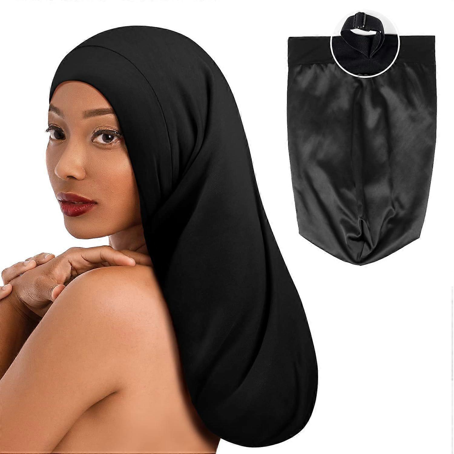 Long XL Silk Satin Bonnet for Braids, Dreadlocks for Curly Hair Sleeping, Large