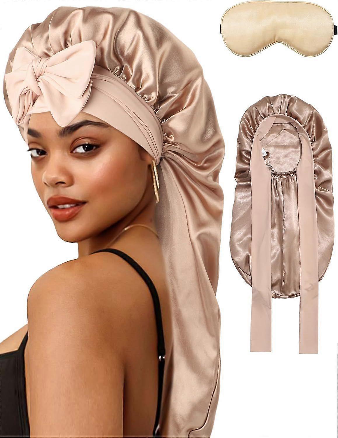 Long Silk Bonnet for Sleeping Women Satin Bonnet for Braids Silk Eye Mask