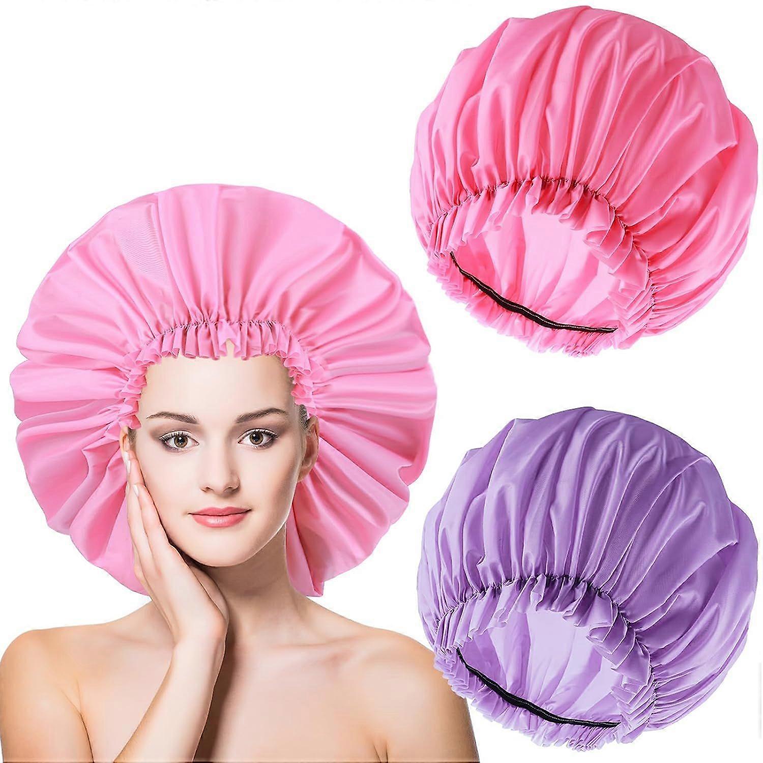 2 PCS Large Shower Cap for Braids - Waterproof Shower Cap for Women, Reusable XL