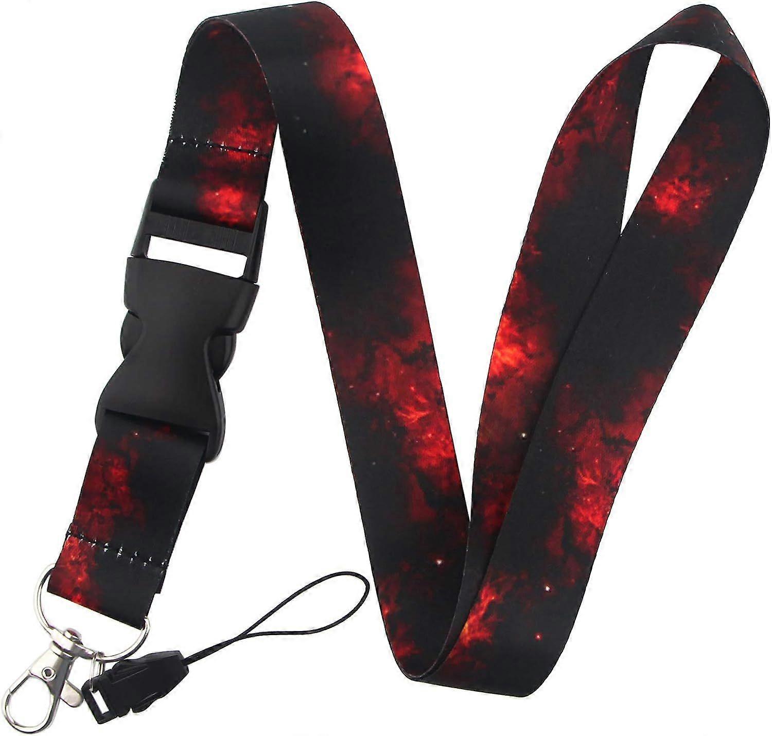 Black Red Lanyard for Keys Keychain ID Badge Holder with Safe Removable Black