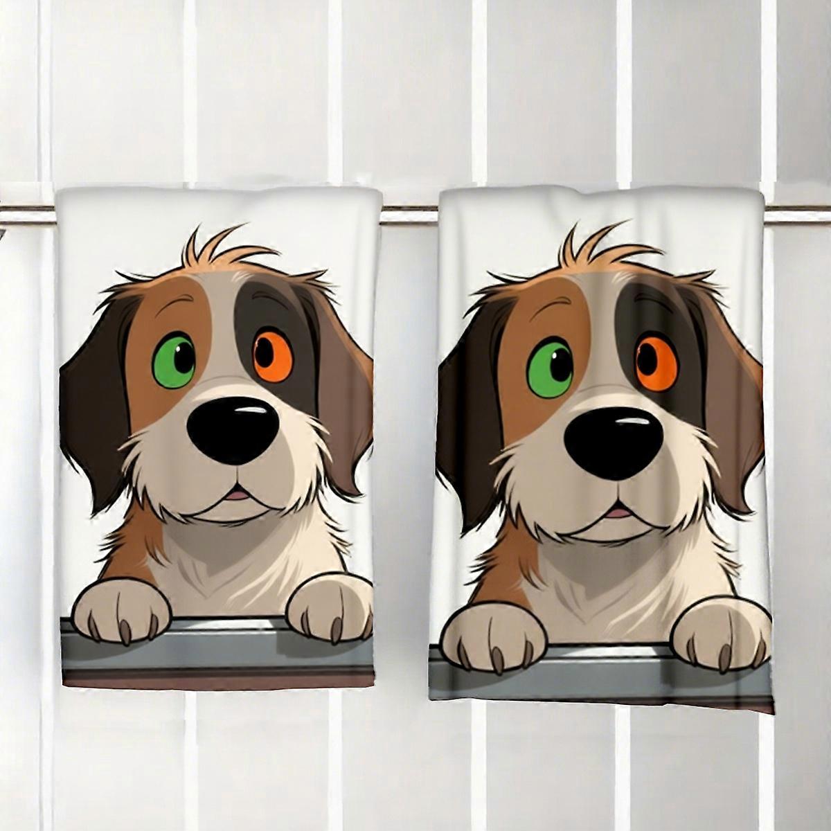 2Pcs, Cute Dog Kitchen Towels with Different Colored Eyes, 40Cm*60Cm Towel Set, Super Absorbent Soft Cleaning Cloth, Cooking Baking Tea Towe