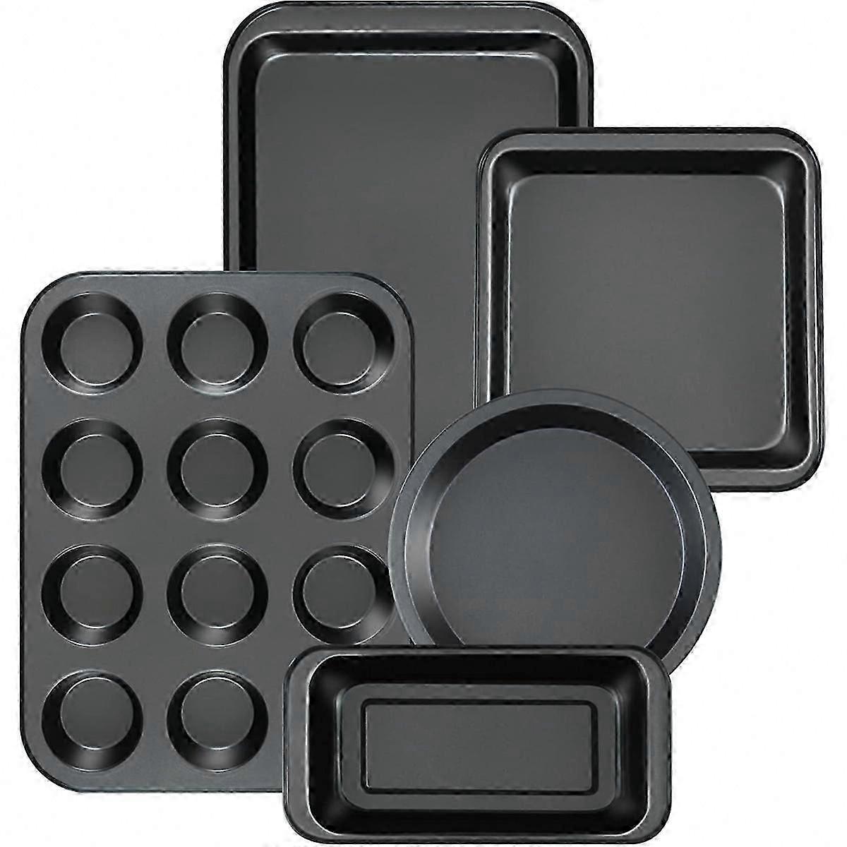 Nonstick 5-Piece Bakeware Collection - Includes Cake Pans, Muffin Tray, Loaf Pan, Roast Pan & Baking Sheets for Kitchen Use