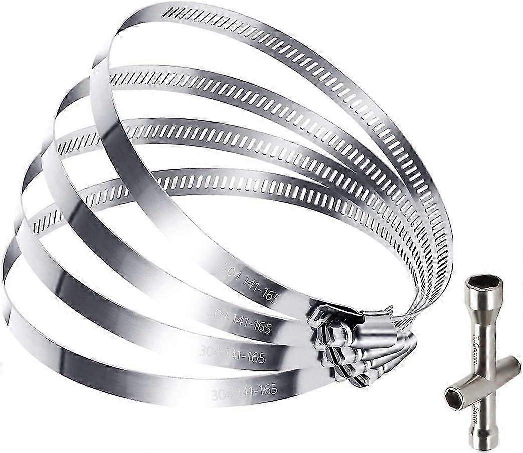 6 Inch Hose Clamp, 150mm Hose Clamp, Adjustable Clamp Range 141-165mm, 304 Stainless Steel Hose Clamp, 4 Pieces Edition A